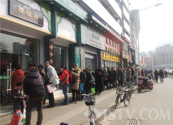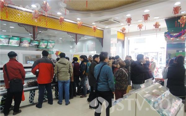 离除夕农历二十九还有两天。但是,今天下午荔枝新闻通讯员在位于南京市湖北路上的韩复兴清真食品店看到,购买盐水鸭的队伍已从店堂内延伸到店门口,并拐了个弯,排队到人行道上足有50多米长。