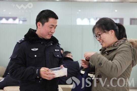 结婚两年,孩子一岁了,三年来却没和家里人吃过一顿年夜饭,为此苏州市交警支队与有关网站合作完成他老婆赵蓝一个心愿,在除夕这天为坚守在工作一线的小屠送上一顿不寻常的年夜饭。