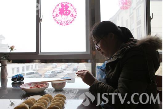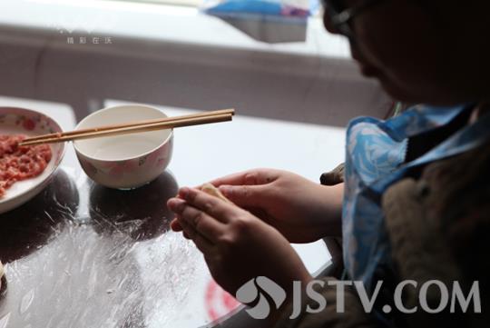 一切准备就绪,小蓝包起了饺子,边包边告诉小编,和小屠相识三年来她最大的心愿就是和老公吃上一顿年夜饭,这个愿望今天终于可以实现了,想想就很激动。