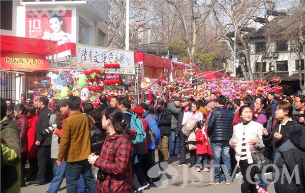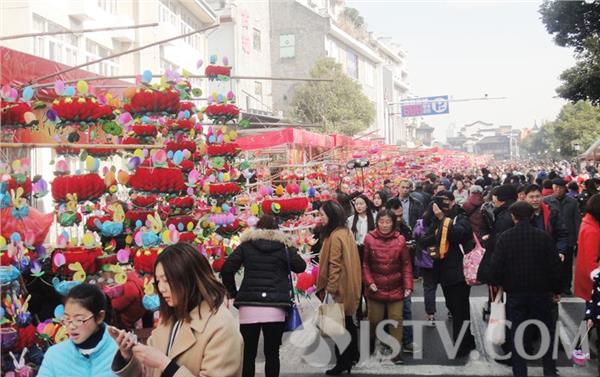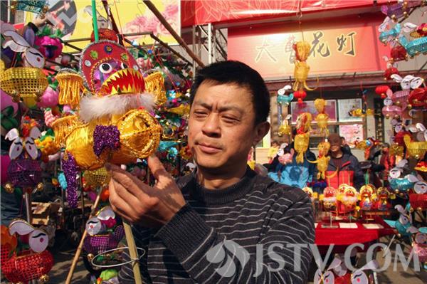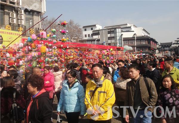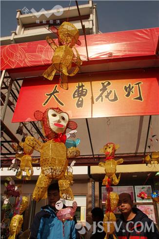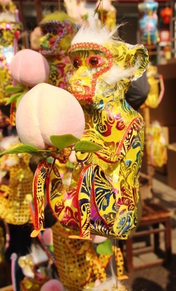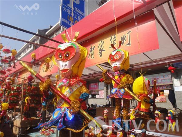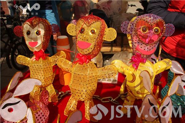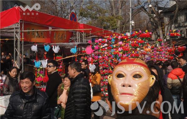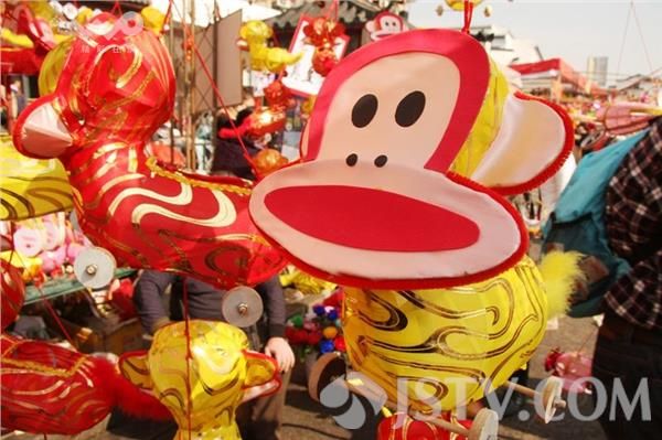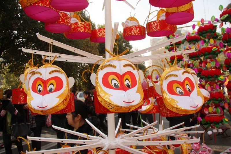今天是大年初二,南京天气晴好,气温回升,室外最高温度达到了17度。荔枝新闻网友中午在夫子庙花灯市场看到人流如潮,众多南京市民和游客有的结伴、有的与家人一道兴致勃勃地前来观看和选购猴年秦淮花灯。今年的猴子花灯不仅品种繁多,而且活灵活现,论材质分:有锦缎的、布绒的、塑料的。论形态分:有抽象的、卡通的,令人大开眼界。笔者细数一下整个花灯市场竟有大大小小的猴子花灯50多种,可见扎灯艺人的多才多艺、心灵手巧。