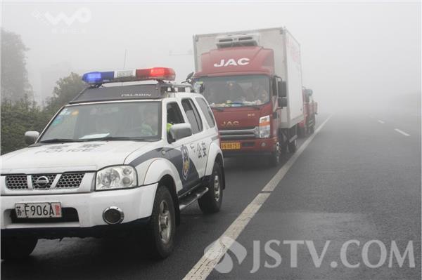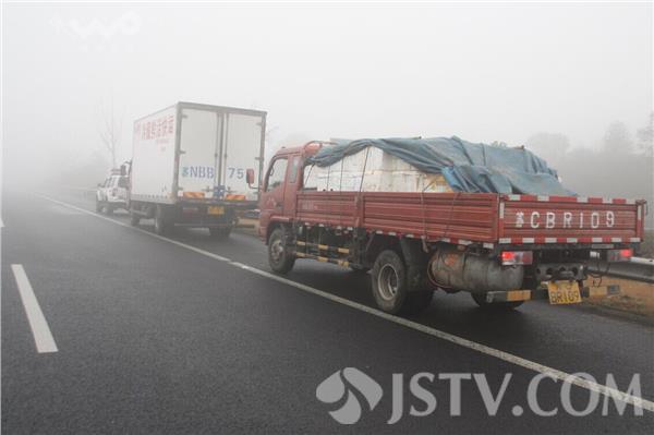 原来,贺某驾驶装有6000多斤蟹苗的货车,由南向北在沈海高速上行驶,准备送去连云港,当行驶至如皋服务区时,贺某发现油箱黄灯亮起,马上要没油了,贺某只得进入如皋服务区加油。由于沈海高速因大雾实行特级管制,禁止一切车辆在高速上行驶。而此时,贺某见浓雾一时无法散去,如皋服务区也处于只进不出的状态,万般无奈之下,贺某拨打了大队值班电话,向交警大队求助。