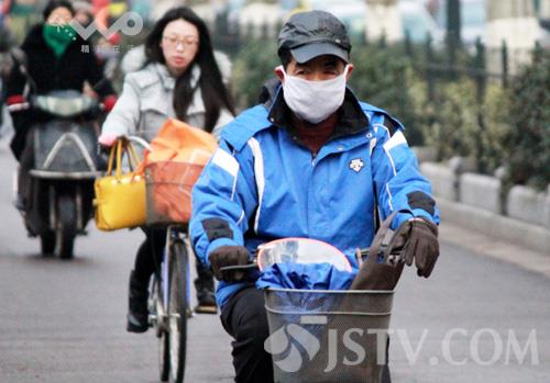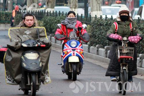 2月14日,南京市区遭遇大风降温天气,节后上班的人们“全副武装”御寒保暖。目前,南京市气象台已发布寒潮预警和大风警报,预计15日早晨最低气温将跌破0℃,冷空气影响时陆上风力将达5-8级。