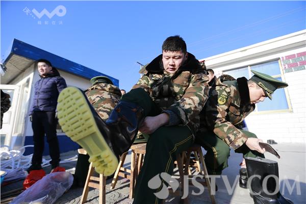 今天,2月15日清晨,江苏省南通边防支队洋口港边防派出所官兵在当地渔民的带领下,前往抹香鲸搁浅的滩涂对鲸鱼做好保护工作。