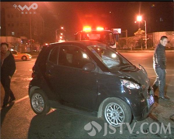 今天(2月17日)凌晨2点钟左右,在南京市新街口洪武路与中山东路路口,一辆海马轿车在路口等红灯,突然一辆奔驰斯玛特轿车从最前方转弯过程,和海马轿车迎面相撞。事故导致海马轿车上一名乘客胸部受伤。肇事司机王某下车后承认是自己的过错,刚刚开车时,自己因为打电话分神了。