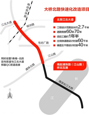 按照计划,今年第四季度,南京长江大桥将启动大修工程。在南京市两会期间,南京市交通运输局局长陈雷表示,预计大桥北路全线快速化改造将与大桥大修同步实施。这也意味着,今年下半年,大桥北路快速化改造将会启动,工程竣工后将有效解决南京长江大桥和江北大道之间拥堵严重的交通问题。