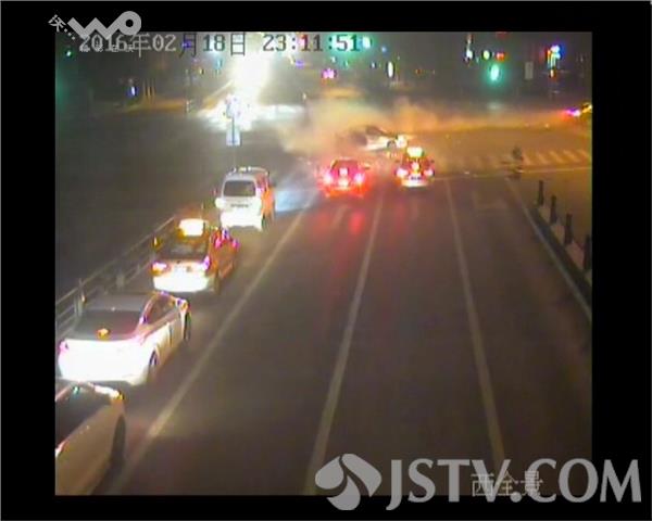 从监控画面可以看到,当时轿车左拐到路中间,突然在右前方,一辆宝马车飞驰而来。和出租车右后方发生碰撞,顿时出租车两个后轮脱落,零部件四处飞舞,宝马车随即漂移了几十米远才停下。事故现场,另一辆等红灯的别克车,也受到牵连,车体被零部件砸伤。