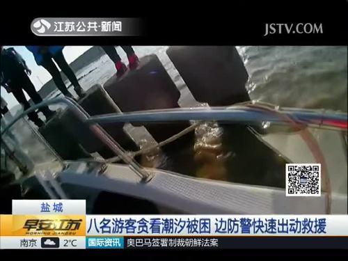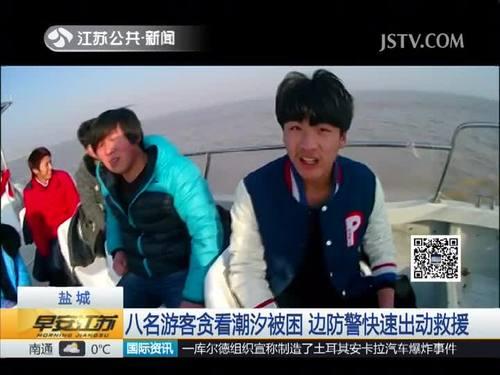 昨天下午三点钟左右,盐城市大淤尖边防派出所接到市民报警称,有八名年轻游客被困在了滨海港月亮湾海滨浴场的阻浪石柱上,现在潮水还在不断的上涨,如果不能及时得到救援,这几人将会有生命危险。