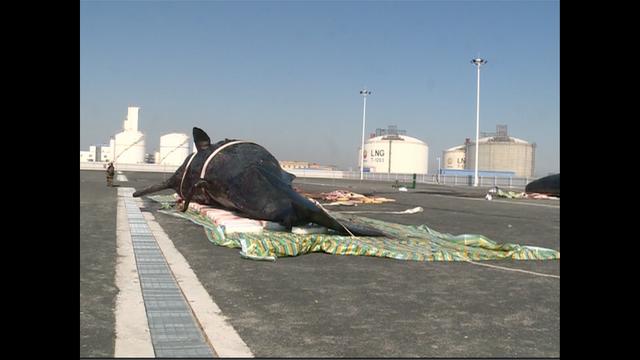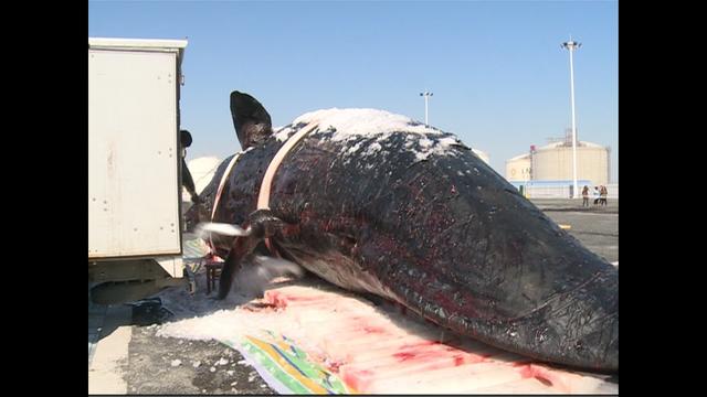 这几天气温开始回升,为延缓抹香鲸腐败速度,抹香鲸尸体存放地保持着大量冰块和粗盐的供应,并且临时搭建了遮阳棚。据了解,这两头抹香鲸将分别由大连生命奥秘博物馆的专家和厦门水陆生物研究所的专家负责标本制作。袁红梅是厦门水陆生物研究所的专家,她曾先后参与过4头抹香鲸的标本制作。