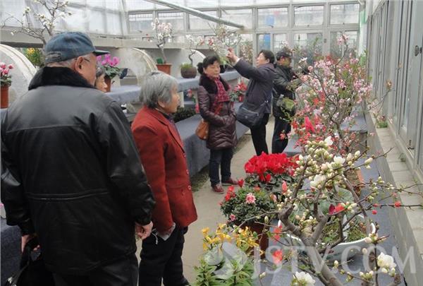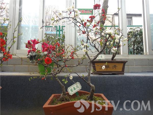 据公园花卉养殖基地袁师傅介绍,这些海棠花都是公园花卉基地自行繁殖的。为了让南京市民和游客在春节和元宵节期间欣赏到婀娜多姿的海棠花,工人师傅们去年冬天就把这些精品花放进了由塑料薄膜覆盖的温室大棚内培养。展出期间为了保持精品园内有足够的温度,他们还采用了炉子生火的方法给植物加温,以确保海棠花盛开。