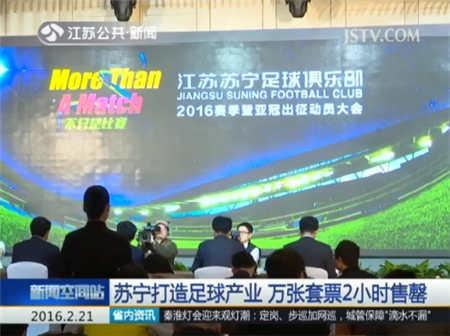 在这个疯狂的冬季转会期,苏宁成为亚洲投入最大的俱乐部。在亚冠出征动员大会上,苏宁打造的足球产业也是初现端倪,值得一提的是,苏宁新赛季全年10360张套票,不到2个小时已经全部售罄。