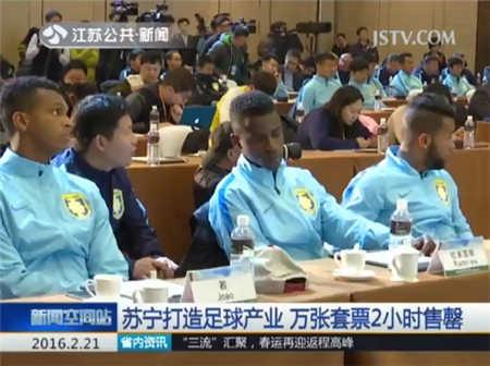苏宁足球俱乐部新赛季全年套票18点18分开售,短短2个小时不到时间,共10360张套票已经全部售罄。此外,PPTV还将开辟苏宁足球俱乐部官方频道,打造互联网+足球的新模式。