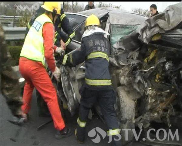 在现场记者看到,轿车车头被撞的面目全非,发动机被甩在4、5米远的地方,消防人员正对两名乘客实施营救。因为事发突然,轿车司机至今还没缓过神来。随后,两名伤者被送往医院救治。
