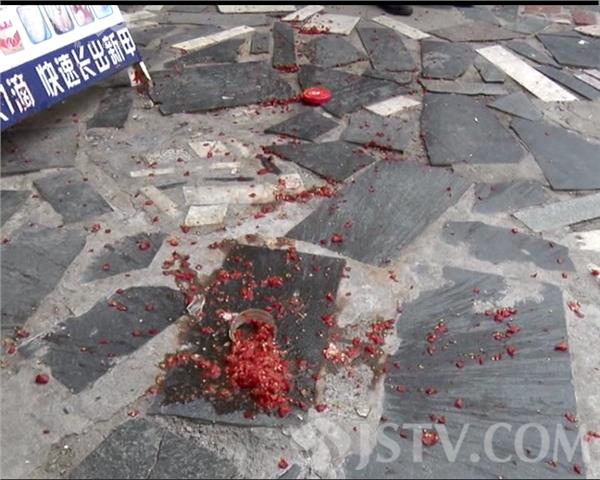 记者刚到朱先生所说的中央北路27号,有居民指着地上的辣椒酱说,这就是当天4楼刚扔下来的一罐辣椒酱。不但有辣酱,还有比手指还粗的铁棍。