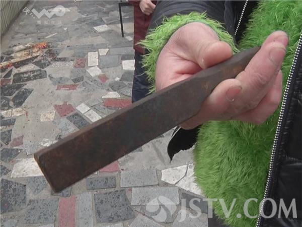 楼下居民说,老人姓吴住在4楼,几乎天天都从楼上往下扔东西,眼前的这个辣椒酱瓶,就是他刚刚扔下来的。说着,一位居民又拿出一块长约20厘米的铁器,这也是老人扔下后被他捡到的。过年后几天,老人已经扔了七八次了。楼下商铺顾客人来人往,还经常有小孩在下面玩,高空抛物险象环生。