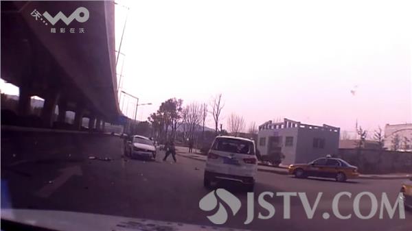 根据警车上的行车记录仪画面显示,中午10点多钟,当警车行驶到三环东路开发区路段时,距离警车不到100米远处,由于对向车道的一辆黑色轿车在掉头时不慎撞上了一辆正常行驶的白色轿车,致使白色轿车在空中整整翻了一圈,最终落在了右侧车道上。