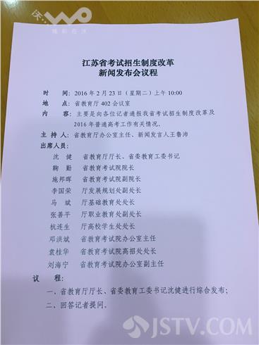 备受关注的江苏高考改革新方案,今天上午尘埃落定。今天(2016年2月23日)上午10点,江苏省教育厅举办新闻发布会,沈健厅长通报我省教育考试招生制度改革的新动向,其中包括社会瞩目的高考新方案。荔枝新闻全媒体记者第一时间及时发布相关信息。