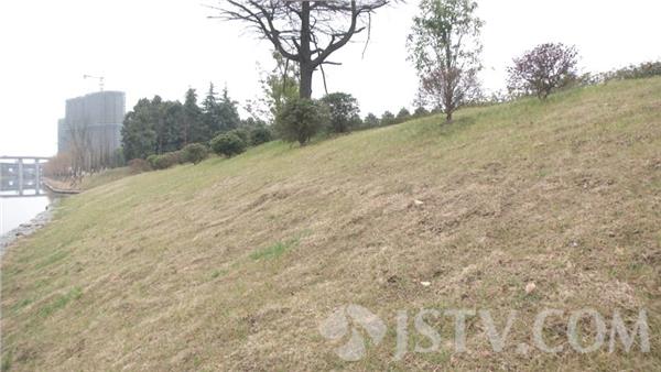 在今年南京提出治理的36条黑臭河中,有两条是在浦口区,这条定向河,从远处看整个定向河的情况还是不错的,河堤两侧的护坡已经被绿化所覆盖,而且石头堤也已经被铁丝网保护了起来,但是走进时就能闻到浓浓的刺鼻的臭味,整个水体是呈现墨绿色。