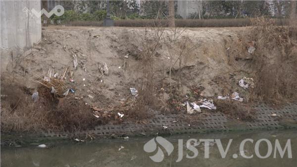 以浦珠中路为界,虽然是仅隔着一坐立交桥,但是记者看到了完全不同的景象,河堤的两侧是布满了杂草和垃圾,整个水体是呈现混浊的墨绿色,散发出一阵一阵的恶臭,在这个水体两侧漂浮着一些垃圾,有的已经腐烂。