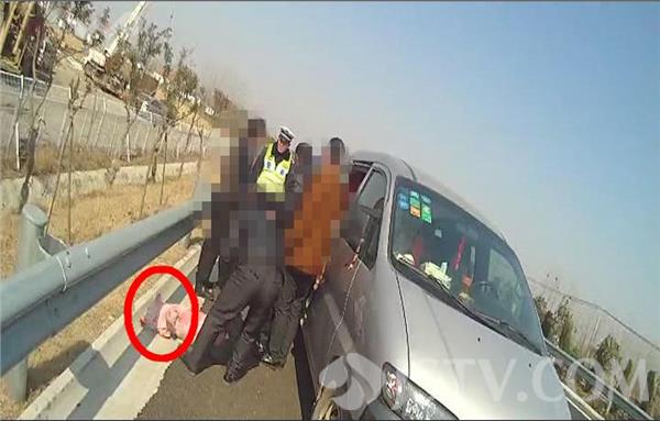 记者从执法记录仪拍摄的视频里看到,一辆小型客车靠边停在应急车道里,几名男子蹲在车子的旁边,正在捆绑一头小猪,车子的后面也没有摆放明显的标志,存在严重的安全隐患。面对执勤的查询,几名男子承认,这头小猪是从前面一辆小货车上掉下来的,他们准备捆绑起来带走。