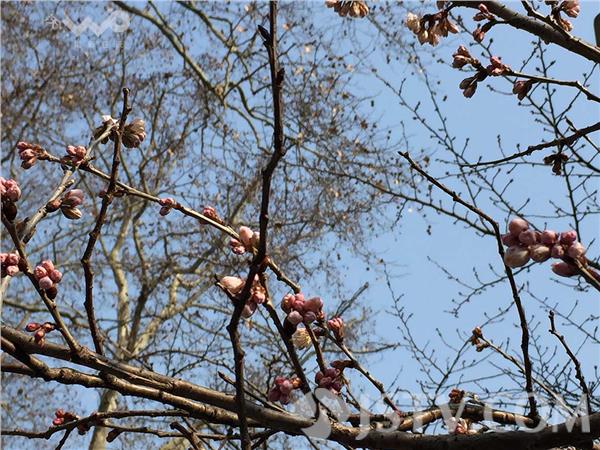 2月24日,鸡鸣寺路两株“樱花消息树”已经开花。绽放的花朵预示樱花大面积开放,游客与市民不久可到南京看樱花海。