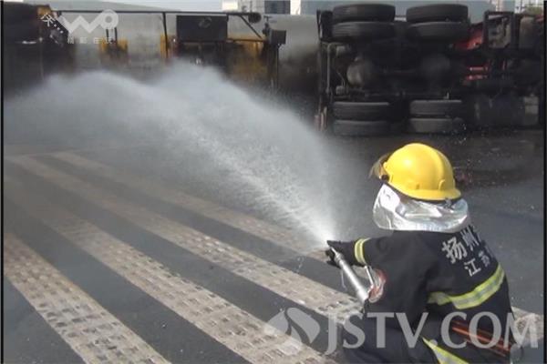 昨天下午1点30分左右,沪陕高速公路扬州仪征市新城段,一辆装载23吨液化石油气的槽罐车,因避让突然转向的轿车,刹车不及,撞破护栏侧翻,罐体阀门损坏,液化石油气大量泄漏,情况万分危急。