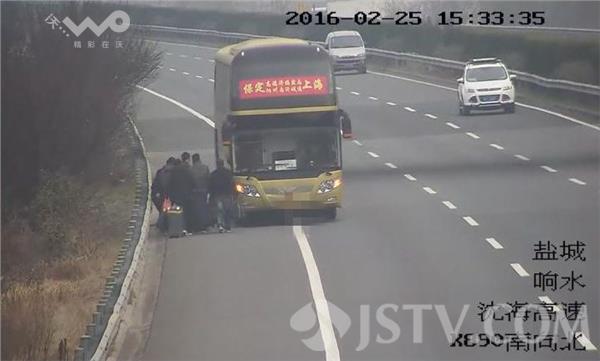 沈海高速盐城高速二大队的执勤民警告诉记者,下午三点半钟左右,他与同事在网上进行巡查时,发现在响水县境内的890号桩附近的一座上跨桥下面,有几名男子拖着行李站在那里,过了没几分钟,一辆由南向北的大客车过来,将这几名男子接上车后离开。记者从警方提供的视频里看到,下午三点三十二分左右,发现路边有六名男子带着行李等物品,站在应急车道的护栏边上说话,三点三十三分左右,一辆贴有保定至上海字样的大客车进入到视频里,客车开到这几名男子的旁边时,压线停在第三车道与应急车道的中央,车上下来一名男子打开行李箱门,将行李搬进行李箱后,几名男子随即登上客车,车辆驶进第三车道离开。据了解,这名客车驾驶员违反了《江苏省高速公路条例》的禁止在高速公路上上、下的规定,将会受到五百元以上、两千元以下罚款的处罚。