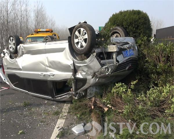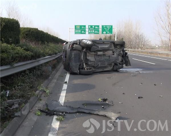 2月25日下午2点左右G15沈海高速大丰白驹出口处向北2公里处,因驾驶员疲劳驾驶低头喝水发生追尾,导至二辆车在高速追尾,相撞后一辆车撞上中间的隔离栏冲到对面的超车道上引起翻车,当时车流量比较大但没有发生二次事故,盐城市高速交警一大队民警接到报警后,立即前往事故地点,为及时的保障高速的畅通,交警通知清障车及时的拖走,保证路段畅通。