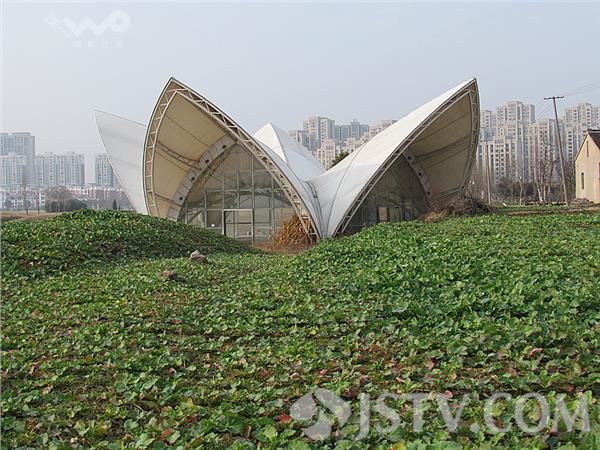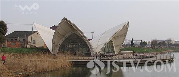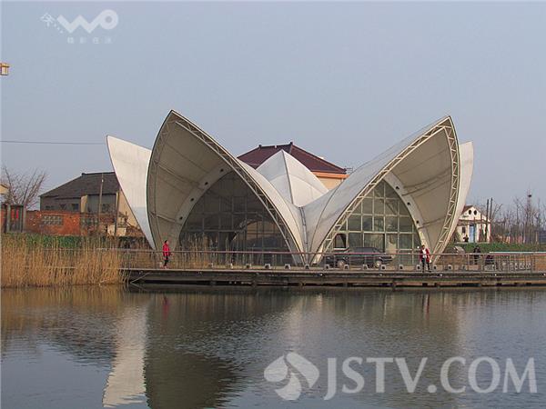 昨天(2月26日)下午,网友在南通海安城东七星湖生态园东南角见到了这座邻水而建的白色建筑,该建筑由几面白色贝壳状的立面构成,造型颇像悉尼歌剧院,被当地人称为山寨版“悉尼歌剧院”。据了解,这座建筑已完工多年,但一直未投入使用,当地居民也不知道当初为何所建,如今,这座建筑的外围被菜地包围,建筑内部空空如也,几扇大门敞开着,里面还挂着一条床单,玻璃也有破损,建筑外面的角落里堆放着玉米杆、枯草。