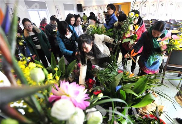 今天(2月27日),中国插花花艺大师、上海市插花花艺协会副秘书长王路昌在盐城手把手地传授插花技艺,盐城的园艺工作者、插花花艺爱好者纷纷拥到现场学习插花技艺。据介绍,王路昌曾参加过“五国元首上海峰会”、“APEC会议”、“上海申博成功庆祝会”等重大活动会场的花艺设计布置。