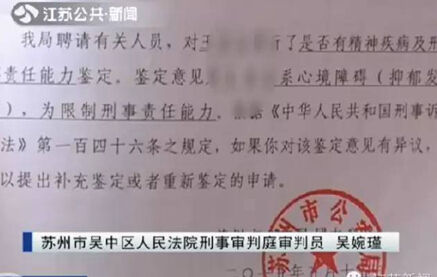 经过鉴定,女子王某行凶时属于心境障碍(抑郁发作),是刑法上的限制刑事责任能力人。