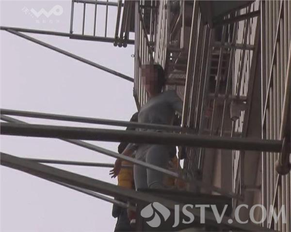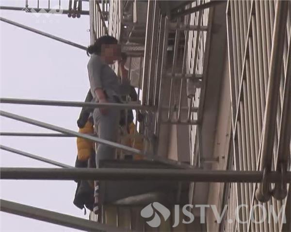 昨天下午3点多,在南京栖霞区化纤新村万鑫世纪园小区,有居民听到楼下一只小狗狂叫不止,下楼一看发现一名20多岁的女子,正站在4楼外的晾衣架上要跳楼,就赶紧报警。