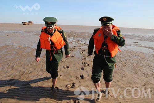 29日上午10点多钟,记者赶到海边时看到,海水正在上涨,出事货船已被牢牢固定,抛锚停靠在一处荒芜的滩头上,距离岸边大约有四百米左右,此时的海风大概有六级,海浪在一米多高的样子,如果不是边防警官及时买来新的铁锚进行固定,很难想象现在的货船会出现什么状况。