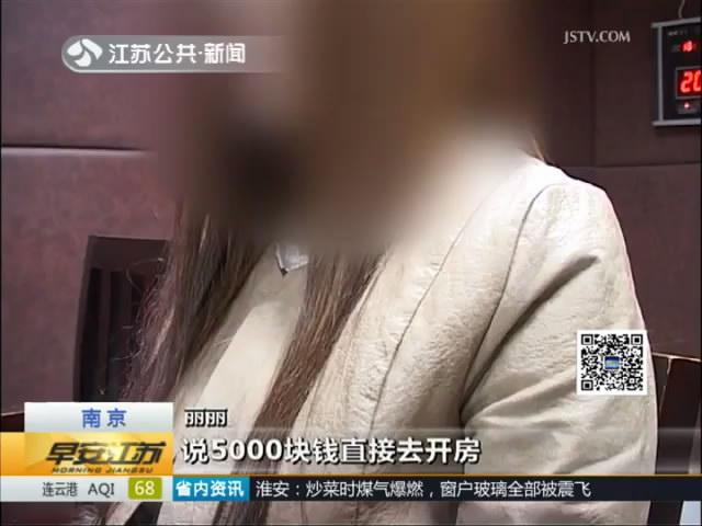 女子自称叫丽丽,山东人,最近来南京旅游。无聊时在陌陌上认识了一名男子,男子称5000元直接去开房,丽丽答应了。