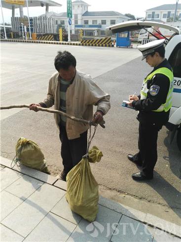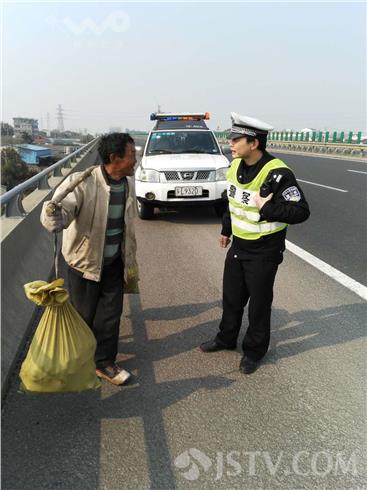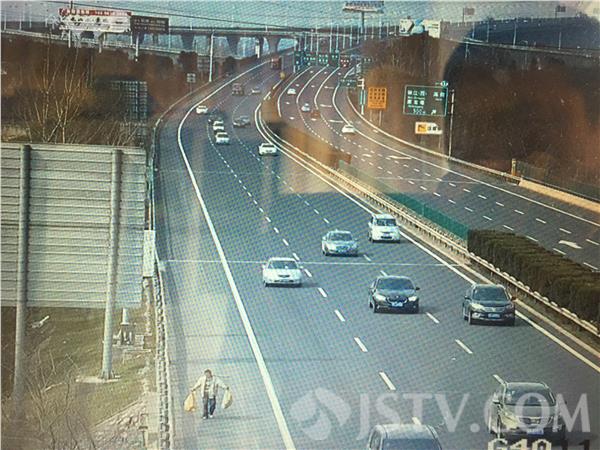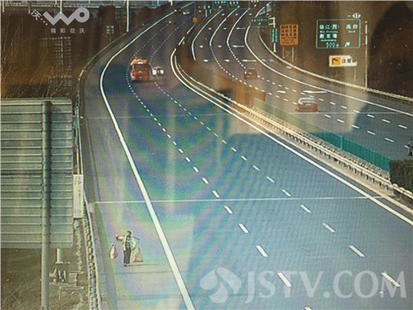 接到指令,民警应福台和辅警张国文赶往现场,在21公里附近发现了这名行人,民警立即将其拦下,告诉其高速公路行人禁止通行,且有很大危险性,随后民警将其带上警车就近从镇江南收费站驶离高速。