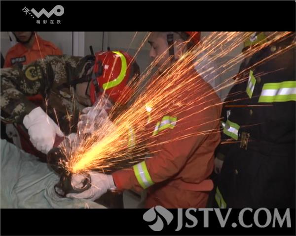 晚上8点多,当记者赶到徐州仁慈医院时,消防队员正对张师傅手上的零件进行切割。为了避免对张师傅造成二次伤害,消防先用纱布将手裹住,在切割的同时,用水在一旁降温。