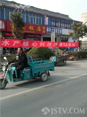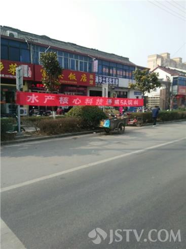 3月2日上午在兴化332省道安丰小学路段,一饲料商家为做广告惹眼,在一广告牌与小树上拉上横幅做饲料广告,近10米长的横幅不但拉弯了固定广告的小树,而且由于横幅架设较低,导致人行道与机动车之间的通道被截断,许多人从此经过只能弯腰慎行。此时适逢放学高峰,希望当地工商城管能够加强户外广告架设管理,确保居民出行安全!