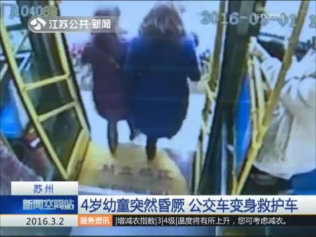 1日上午,一名4岁幼童在苏州501路公交车上突然昏厥,一场紧急救援就此展开。