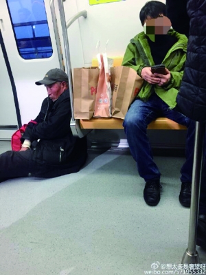 据了解,直到发帖者下车时,这位老人一直坐在车厢的地面上,后来有座位了,老人也不抬头找座位。“后来有位置老人也不坐,看上去也不太美观。”