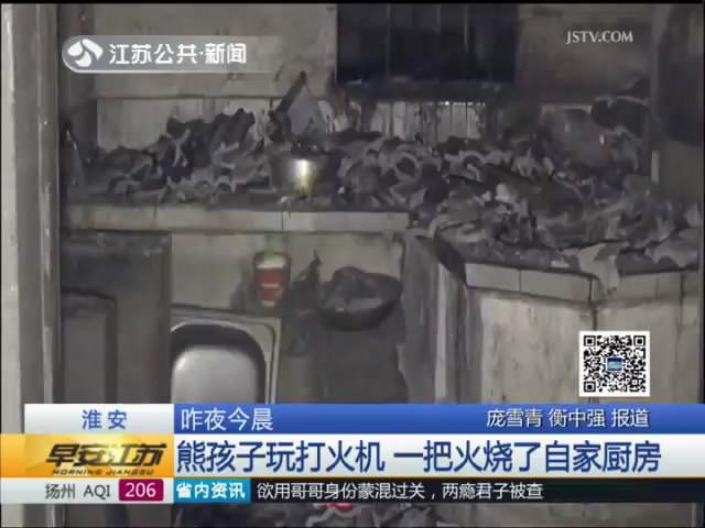 昨晚7点,淮安市淮安区溪河镇杨桥村,一名3岁男童拿着打火机玩耍时,一把火把自家厨房给烧了。母亲也为救自己受了伤。