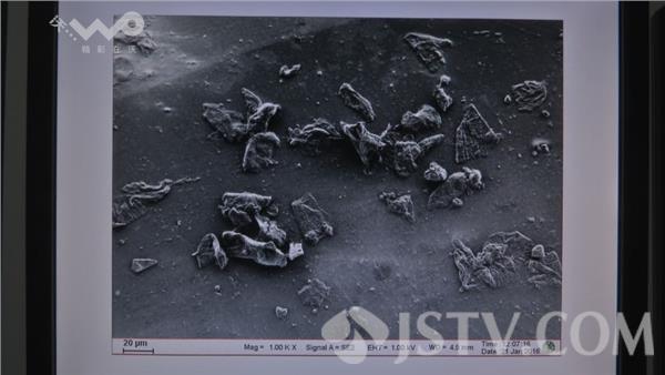 东南大学生物科学与医学工程学院老师介绍,通过显微镜显示, 这个比例尺呢是10个微米,是把放大到了4千倍,现在看到的这些孔的直径应该是介于1微米到2微米之间。这么小的气孔,那可比直径小于等于2.5微米的可吸入颗粒,也就是咱们俗称的'PM2.5'小多了。那么,把隐形眼镜戴到雾霾天的室外,会产生什么效果呢?把一个在雾霾天室外带了足足有四个小时的隐形眼镜带到了实验室,隐形眼镜表面会发生什么变化呢?东南大学生物科学与医学工程学院老师介绍,通过显微镜显示的图片可以看到大的颗粒,这个颗粒应该是几十个微米这样的大小,完全堵住了小的气孔。不但气孔被脏东西堵住了,周围还附着了不少块状颗粒物,真是吓人!实验室老师告诉我们,人眼球最外层是泪膜,在一般情况下,如果雾霾颗粒附着在眼球上,人们可以通过眨眼或者分泌泪液,把它洗刷掉,但是戴上隐形眼镜,镜片会阻碍泪液的流动,使得杂物无法被洗掉。大的颗粒附着在小的气孔上面,影响了氧气的进入眼球可能会缺氧。老师介绍,在雾霾不算严重的天气里,PM2.5的数量还不足以堵住气孔,但一旦PM2.5数值上升,这隐形眼镜可就成了'吸尘器'啦。而时间长了,还可能导致角膜水肿,引发炎症!