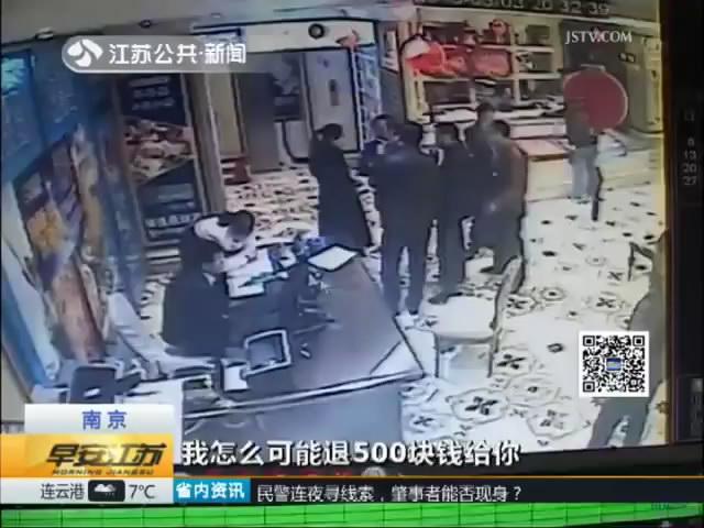 昨晚8点半,南京市江宁区竹山南路一家酒店有客人报警称,自己被店家多收了几百元钱,他们要求退款却遭到拒绝。记者随民警赶到现场后,看到双方仍在争执不休。