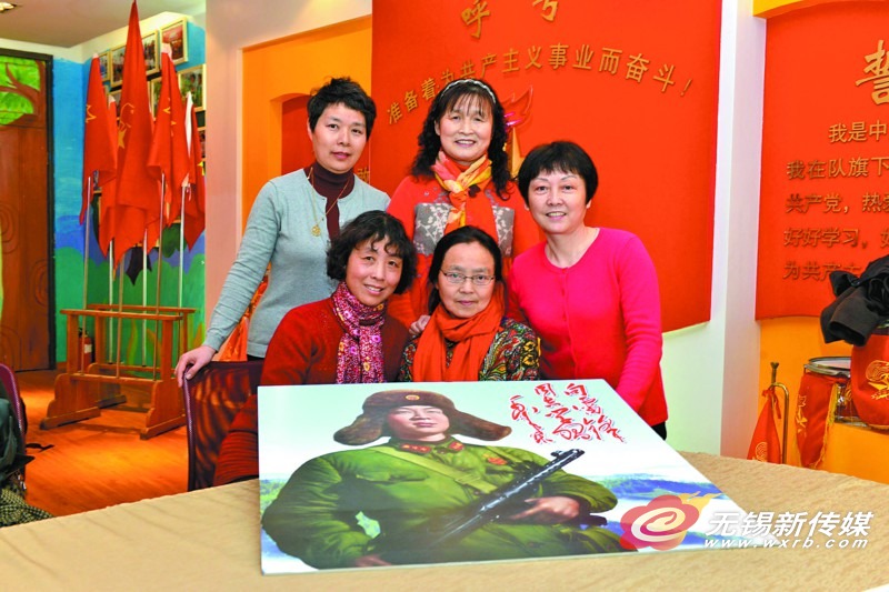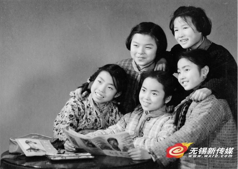 五条鲜艳的红领巾,五张天真烂漫的笑脸,凝望着雷锋叔叔的像,童年的幸福洋溢在她们脸上——上世纪六十年代,生活在无锡市区的居民大概对这张黑白照片不会陌生,1966年3月至5月,它被放大至24寸,镶配艺术相框,陈列于中山路城中公园门口大同照相馆的玻璃大橱窗中。照片题名《望着雷锋叔叔的像》。