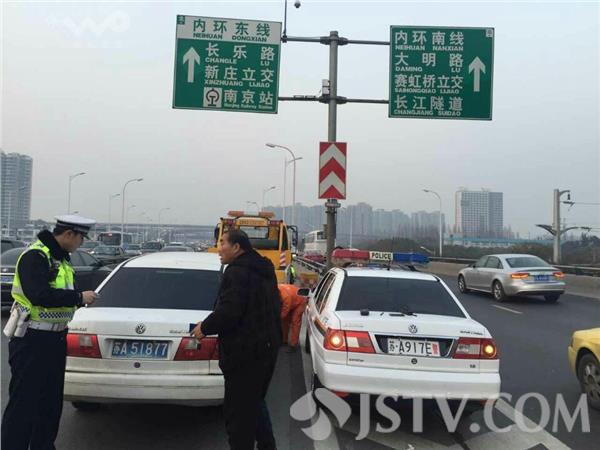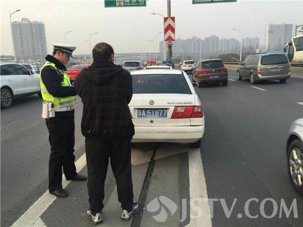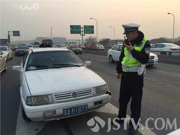 南京城每天的早晚高峰都较为拥堵,特别是双桥门立交南向北方向,由于卡子门段有三个合流口和分流口,交汇分流的车流量非常大,即便民警在渠划线中排放了锥筒,仍有车主违章变道,极大地影响了双桥门立交地区的通行能力。近日,南京交管局机动大队民警谈炜正在双桥门立交卡子门岗对晚高峰车辆进行疏导,一辆银灰色的桑塔纳轿车因为压着渠划线违规变道被谈炜拦下。在收取了驾驶员的驾驶证和车辆行驶证后,谈炜对驾驶员和车辆的信息进行了比对,发现该车检验有效期至2016年1月9日截止,属于过检车辆,在对驾驶员进行了批评教育和交通安全知识宣传后,将其信息录入警务平台,准备对其违章行为进行处罚。此时,平台跳出一则提示信息,显示该车已于2016年1月9日达到强制报废期,一辆过检车变成了报废车,而报废车辆是无法上路行驶的,谈炜立即和值班室取得了联系,再次核实该车的基本信息,确认这辆车牌号为苏A51877的车辆为报废车,需要实施暂扣车辆、驾驶证和报废车辆号牌。驾驶人一听说要扣留车辆、驾驶证,马上向谈炜求情,希望网开一面,谈炜耐心对驾驶员进行教育,使驾驶员认识到自己违法行为的危害,随即谈炜对其开具了强制措施凭证,并联系拖车将报废车辆拖移至大队停车场,告知驾驶员30日内携有效证件和凭证至交管局综合服务大厅接受后续处理。