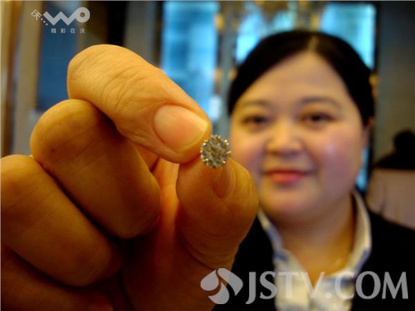昨天晚上9时左右,南京鼓楼区江苏饭店女服务员孟雨晨,像往常一样正在清理二楼建宁厅包间时,看见地毯上有一粒东西在闪光,捡起来一看,居然是一枚耳钉钻石,她赶紧将耳钉钻石交给饭店吉领班寻找失主。