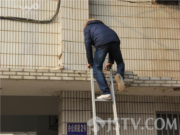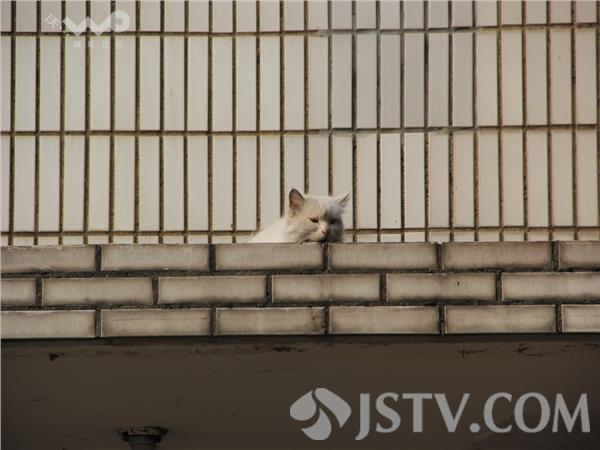 今日(3月10日)早晨8点,鼓楼区煤炭港一大院内,在二层楼屋檐上,有只怀孕大白猫趴在屋檐边,不停地“喵喵”叫唤,乞求有人来相救。多人发现相救都未果,最终,还是在一位好心市民伍先生爬梯上房檐相救成功。