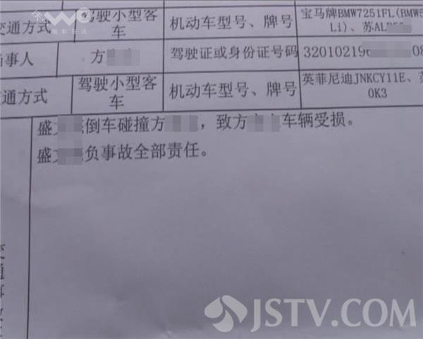 现场据盛某称,自己的车子是被小区另一车主给锁上的,此前(2月14日)因为倒车不慎,碰伤了他的英菲尼迪,当时自己并未注意,几天后对方车主拿着监控找到自己,说是自己倒车时撞倒了他的车子,自己看到监控也认可了,可在保险公司人员来现场查看确认时,原来该车遭撞击处竟有2次碰伤,就是说,在同一位置,早前就已被人撞击过,经调取监控查看,确在2月13日时,该车就已被他人(车子车牌不明)撞击过,自己当然不能完全承担赔偿责任,只能承担后面一次的责任。而事后赶来的英菲尼迪车主方某却十分气愤,据称,盛某车子正是他锁的,自己车子确曾遭受过两次撞击,两次撞击位置也几乎重合(无法判定哪一次更重),但盛某撞车后竟然逃跑,并未选择报警,自己还是在查看监控后才找到了盛某,现在车子已经交警9大队认定了赔偿责任,可盛某却拒绝赔偿(共计1万多元),自己只得将他车子锁了。据悉,上次因为赔偿纠纷,方某已经锁过一次盛某的车子。民警了解情况后,当场批评了盛某在撞击他人车辆后不及时报警却选择“跑路”的行为不对,,明显有肇事逃逸嫌疑,而方某在索赔不成两次私自锁他人车子的行为也很不妥,如双方协商赔偿不成,完全可以走司法途径。鉴于现场双方对立严重,争执不下,警方提议双方通过司法途径解决争端,双方对此无奈接受。