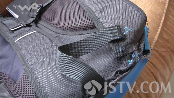 苏州市纤维检验所工程师介绍,做完测试之后,包体也开裂,缝线全部断开,更差一点整个背带一拉就拉掉了。