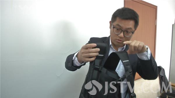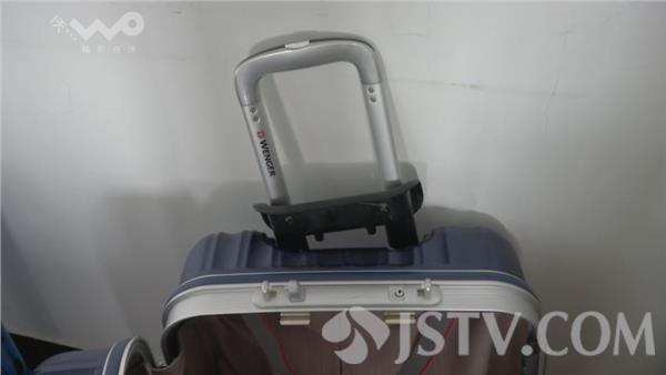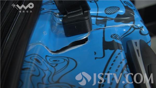 江苏省苏州市纤维检验所工程师介绍,根据这个箱子的规格负重大概16千克,把它挂在上面拉杆要拉到最长,然后提上去15厘米做自由落体,然后突然停止截住它,一分钟二十次。这个拉杆箱做了三百次之后就坏了,没有达到要求!