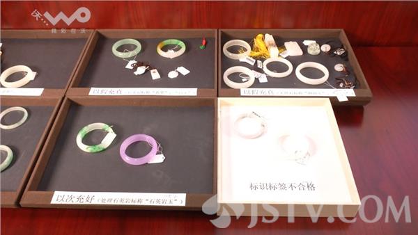 南京市产品质量监督检验院国家注册珠宝鉴定师介绍,用俗称的方式代替用B A代替,比如说是大理石,用另外名称比如卡瓦石,用其它名词代替这个名字误导消费者处理的翡翠,应该是翡翠括号里备住出来,是漂白、充填处理,处理方式标识清楚。