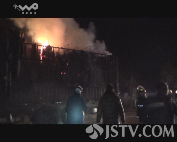 3月9日晚上21时,盐城市204国道阜宁与滨海交界处,一辆行驶中的货车突然起火,火势很快蔓延将整个车厢引燃,司机发现限期后及时报警求助。据货主了解,货车刚刚从那边过来,他在响水收费站那边过来,就过来这么一点远,驾驶员打电话说出现情况了,他们就过来了。司机表示,他在前面发现后面冒烟,马上就停下来了,是反光镜看到后面冒烟,车上带了一个小的灭火器,但是不管用。